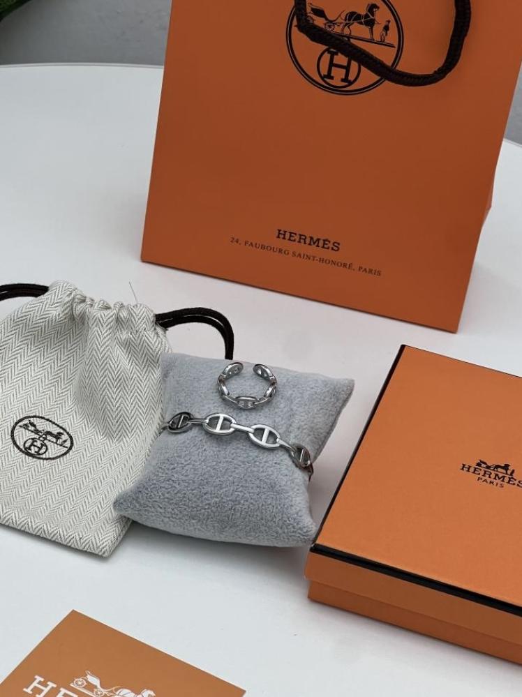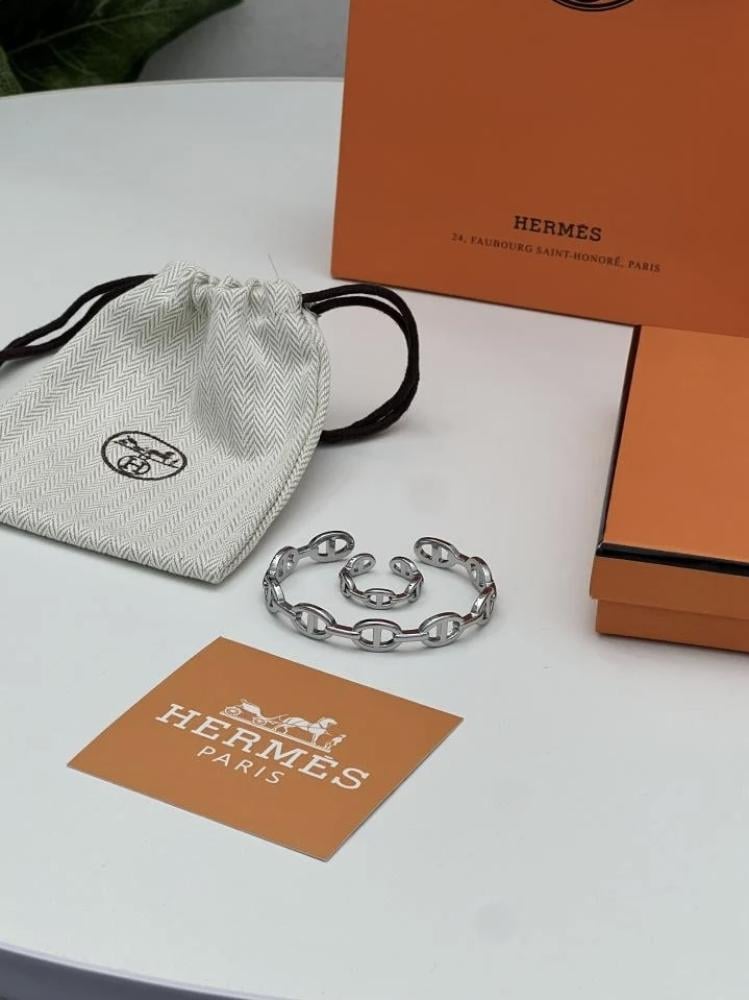 سوار Hermès الفضي – رمز الفخامة والأناقة العصرية 🩶
