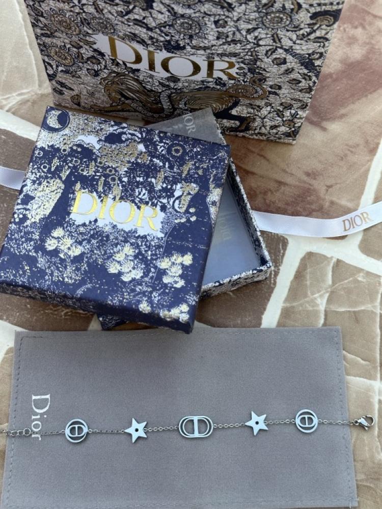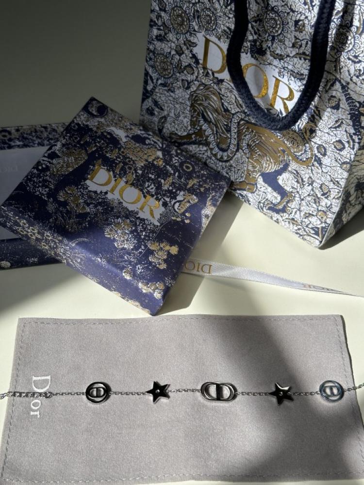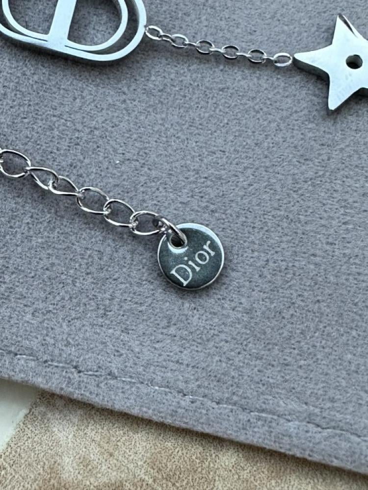 سوار Dior الفضي بتصميم النجوم وشعار الماركة – لمسة عصرية أنيقة