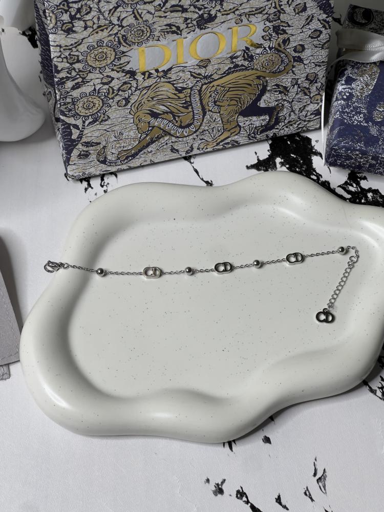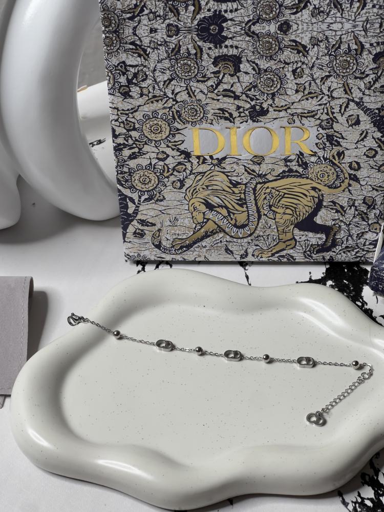 التصميم: سلسلة ناعمة مزينة بشعارات Dior الصغيرة وحبيبات معدنية أنيقة