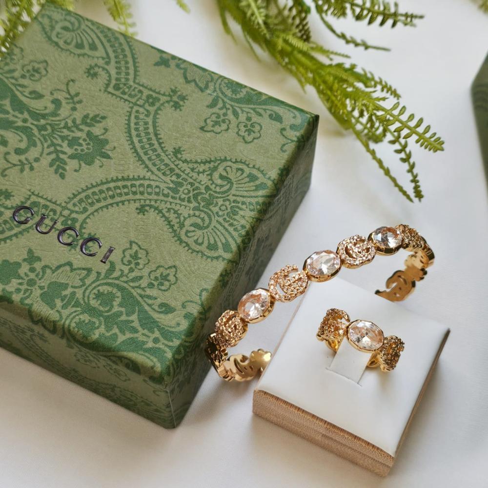 اسوارة مع خاتم مستوحى من GUCCI حصري ومميز مصنوع من الستانيلس ستيل معدن مقاوم للصدا