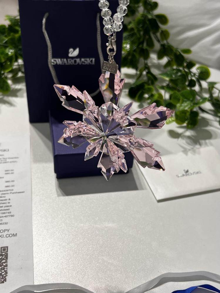مصنوعة من الكريستال الوردي اللامع على شكل ندفة ثلج متألقة، تعكس الضوء بشكل ساحر وتمنح أجواء من البهجة والرقي.