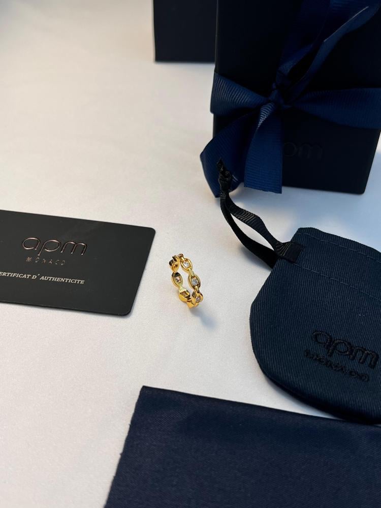 ✨ خاتم APM Monaco الذهبي بفصوص براقة – فخامة تنطق بالأناقة ✨