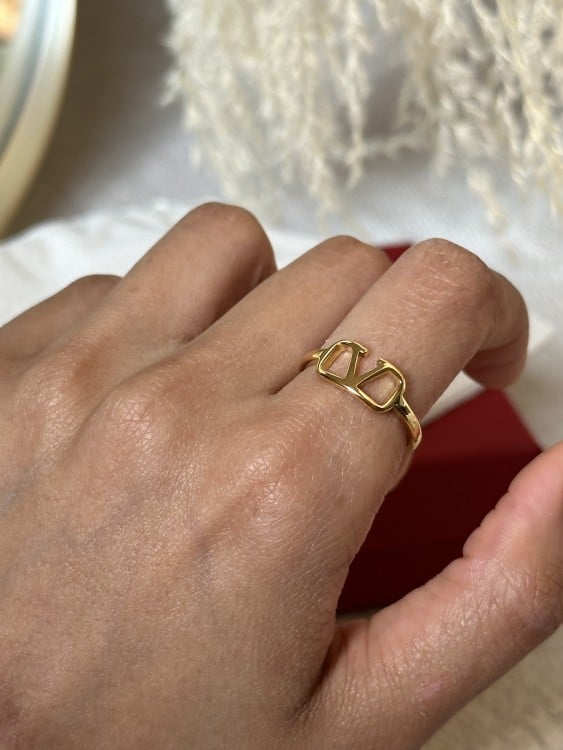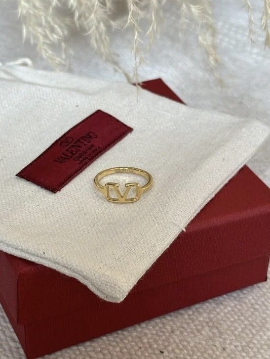 خاتم بتصميم فلانتينو المميز معدن ذهبي مطبوع الشعار في الخاتم مصنوعة من الستانلس ستيل المقاوم للصدأ نضمن لكم جودة المنتج مطلي بطلاء الذهب .ضمانة عام كامل على اللون