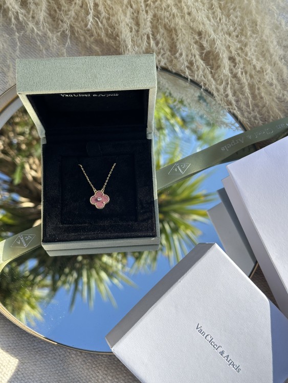 سلسال بتصميم فان كليف المميز يمتاز بحجر باللون الصدفي المميز