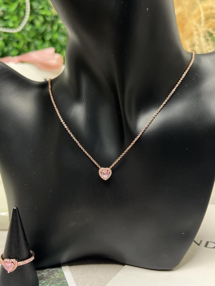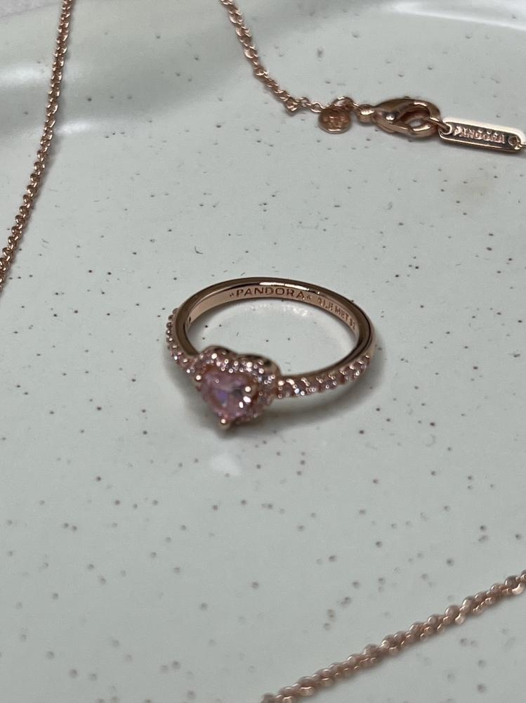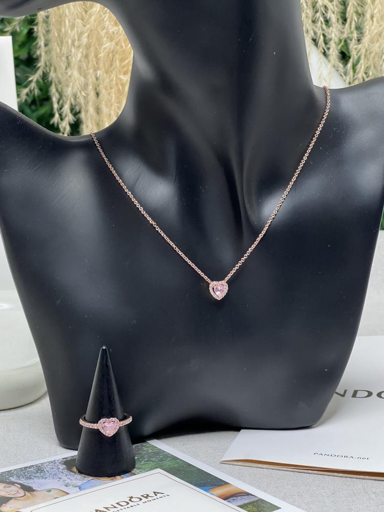 طقم باندورا قولد روز الطقم عبارة عن قلادة باندورا بشعار الماركة مصنوعه من الفضه عيار 925 خاتم باندورا فضة بشعار الماركة بداخل الخاتم جودة عالية جداً نراهن عليها الملحقات عبارة عن ملحقات السلسال + الخاتم بكامل اغراضها .