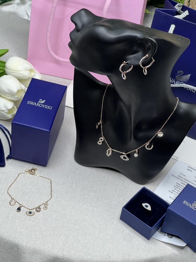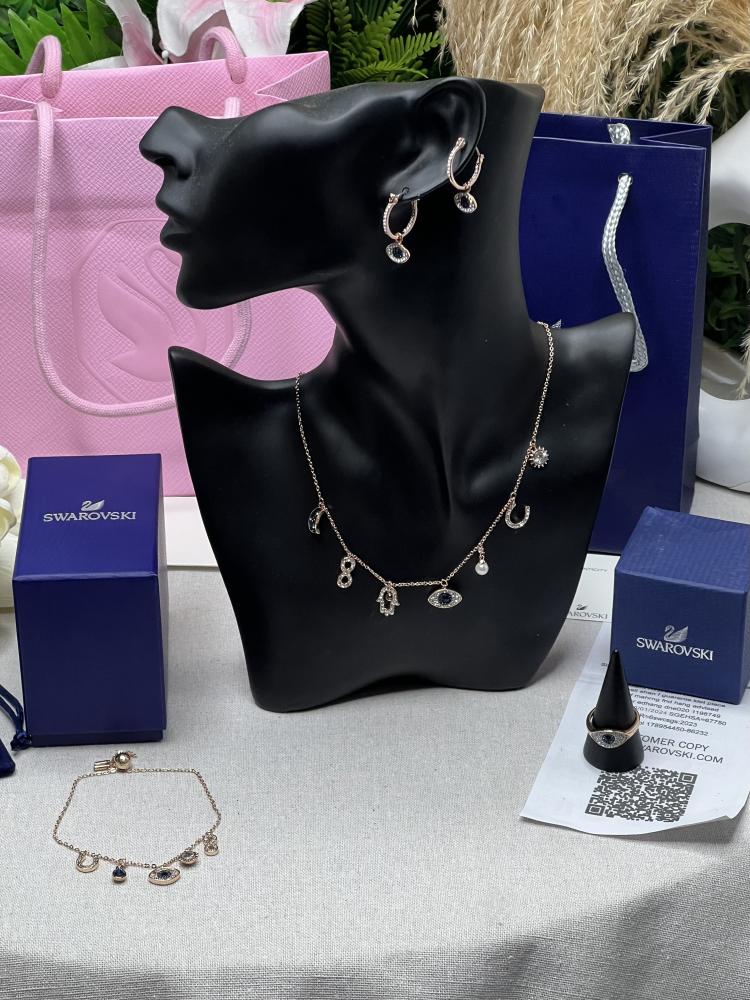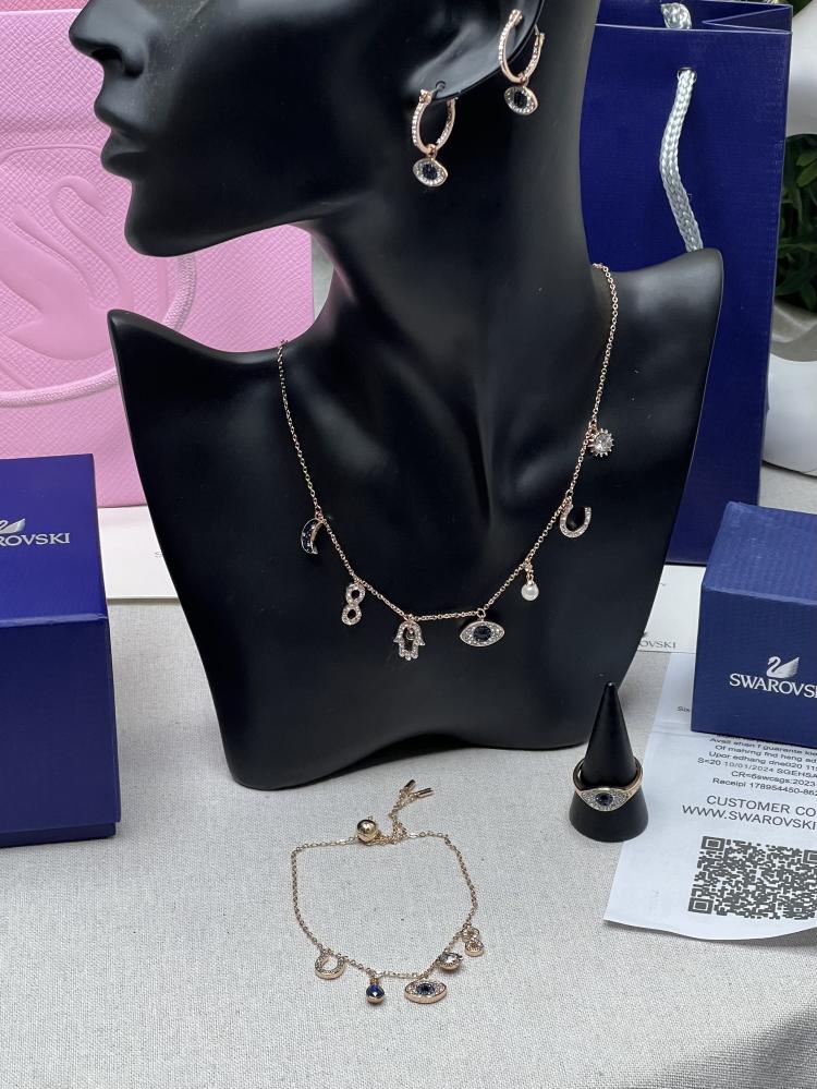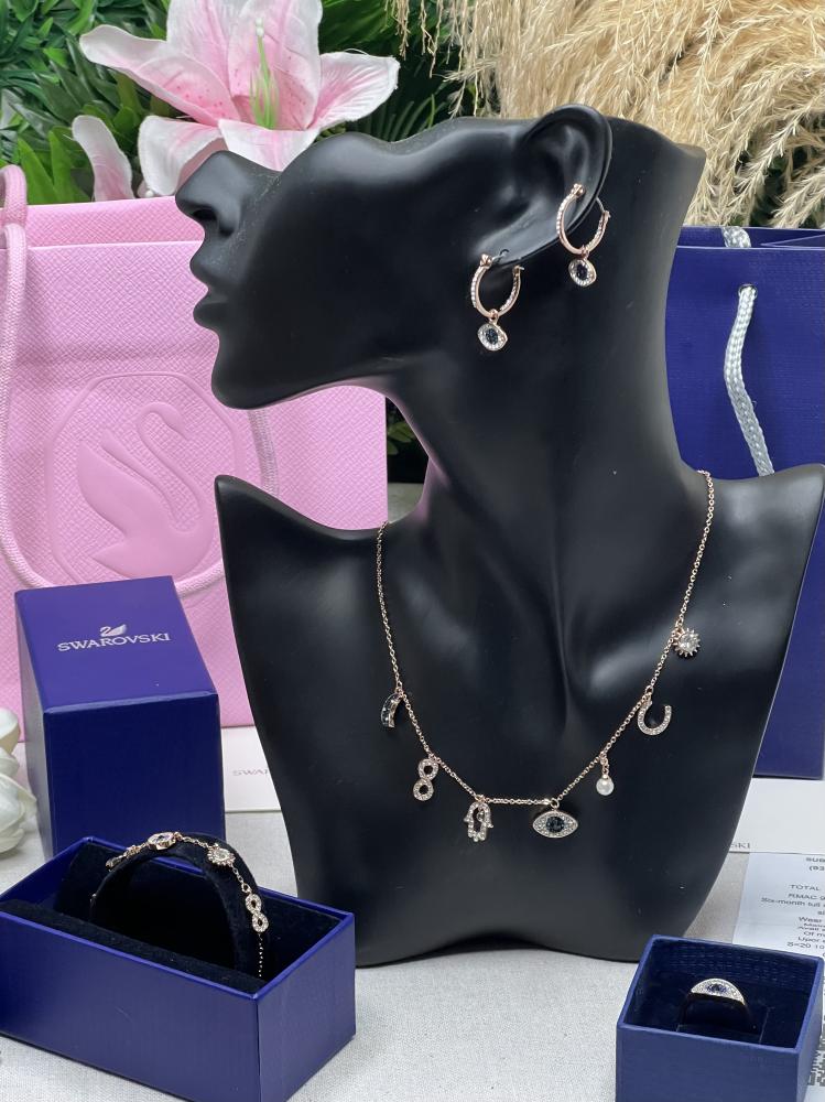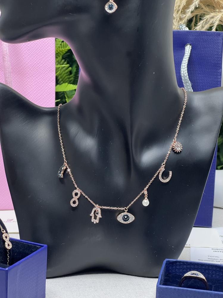 الطقم عبارة عن قلادة سوارفيسكي بشعار الماركة
