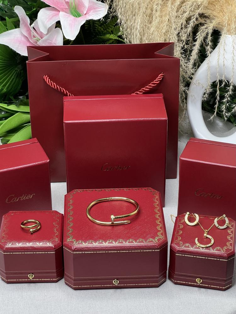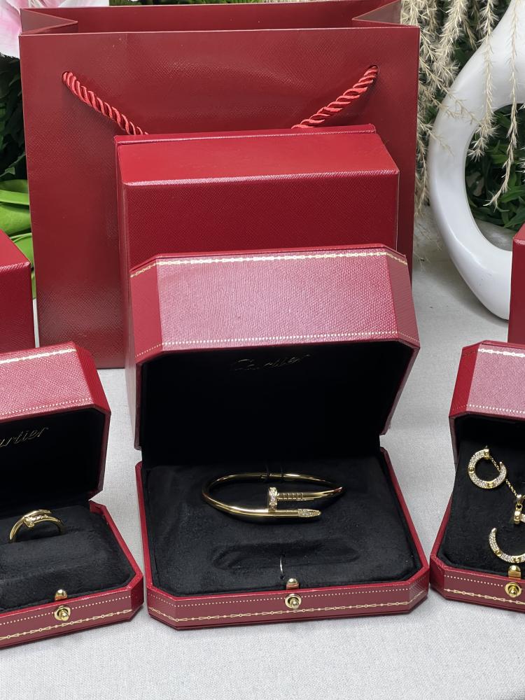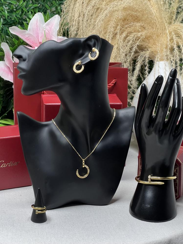 طقم carter ذهبي الطقم عبارة عن قلادة كارتيه المسمار بشعار الماركة مطلي بطلاء الذهبخاتم كارتيه ذهبي اسوارة كارتيه ذهبي جودة عالية جداً نراهن عليها الملحقات عبارة عن ملحقات السلسال + الخاتم + الاسوارة بكامل اغراضها .