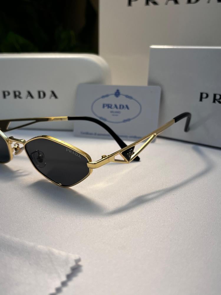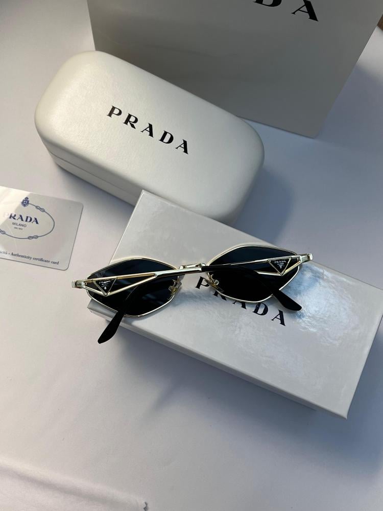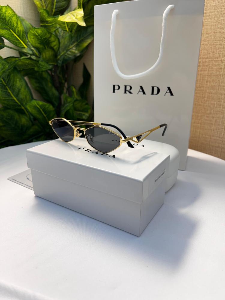 نظارة Prada الشمسية بإطار ذهبي وعدسات سوداء – أناقة إيطالية بتفاصيل فاخرة 😎✨