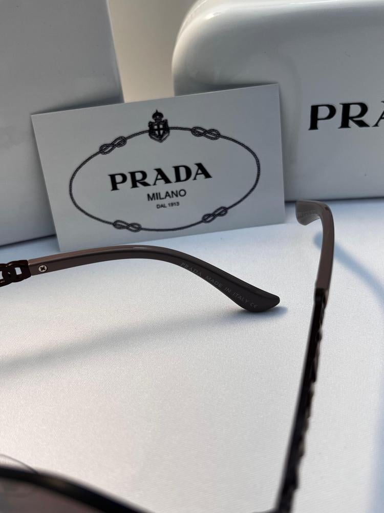 نظارة PRADA Milano تجمع بين التصميم العصري واللمسة الكلاسيكية الفاخرة، بعدسات متدرجة وحواف أنيقة تبرز شعار PRADA البارز على الجانبين، لتكون القطعة المثالية لعاشقات التميز.