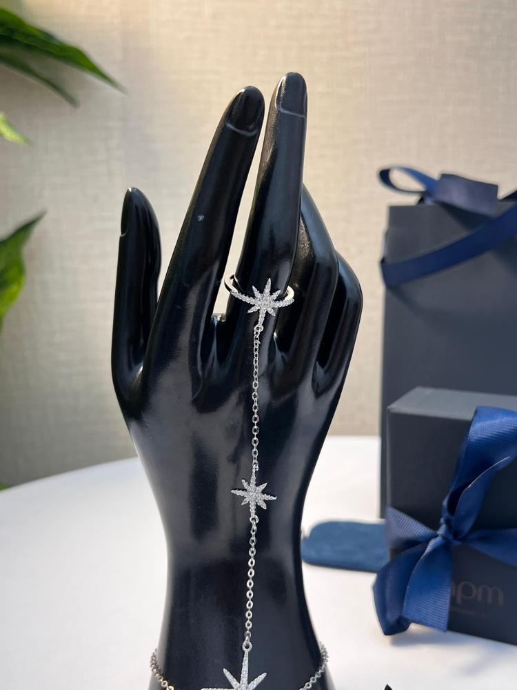 التصميم: نجوم مرصعة بالكريستال مرتبطة بسلسلة دقيقة بين الأصابع والمعصم