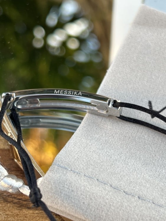 معدن بشعار الماركة باللون الفضي مع ختم الماركة في المعدن