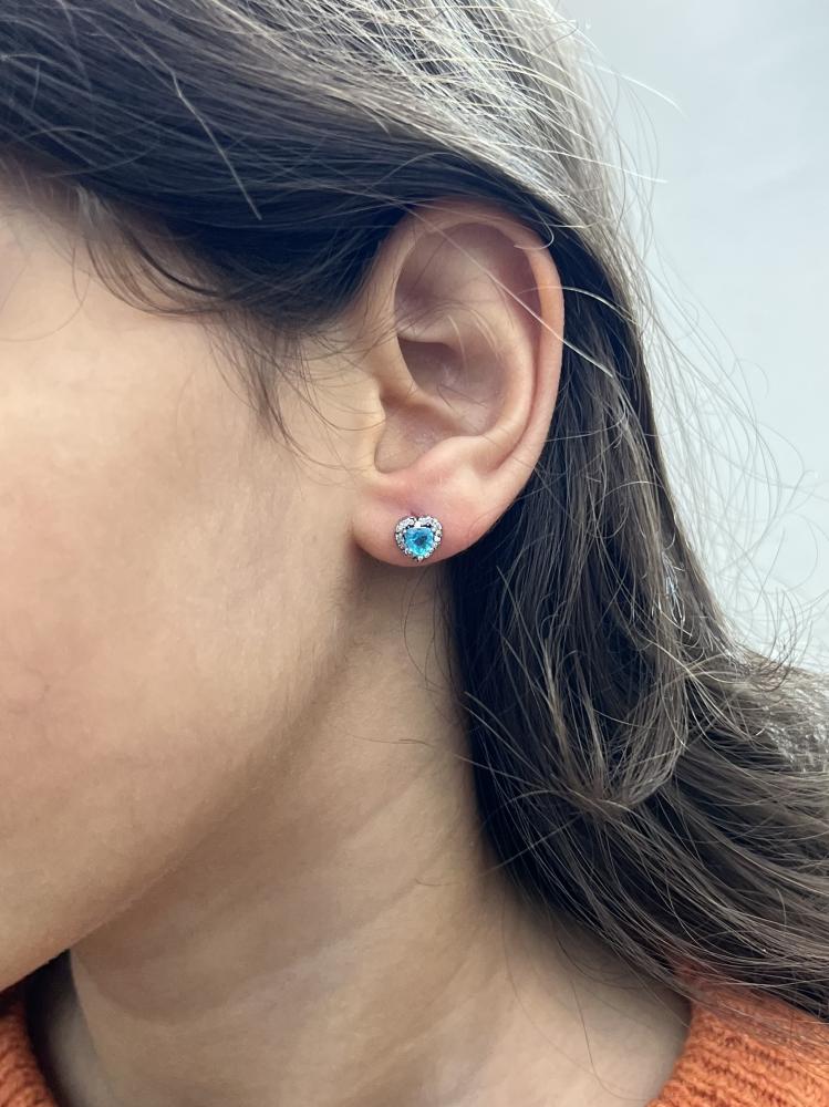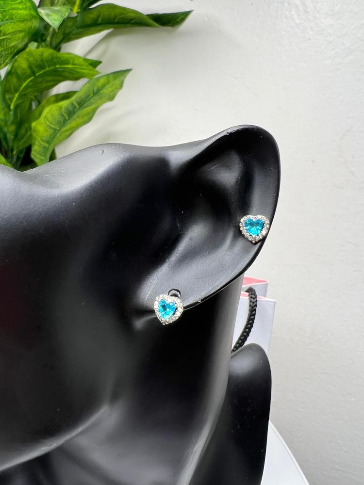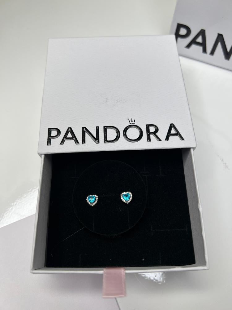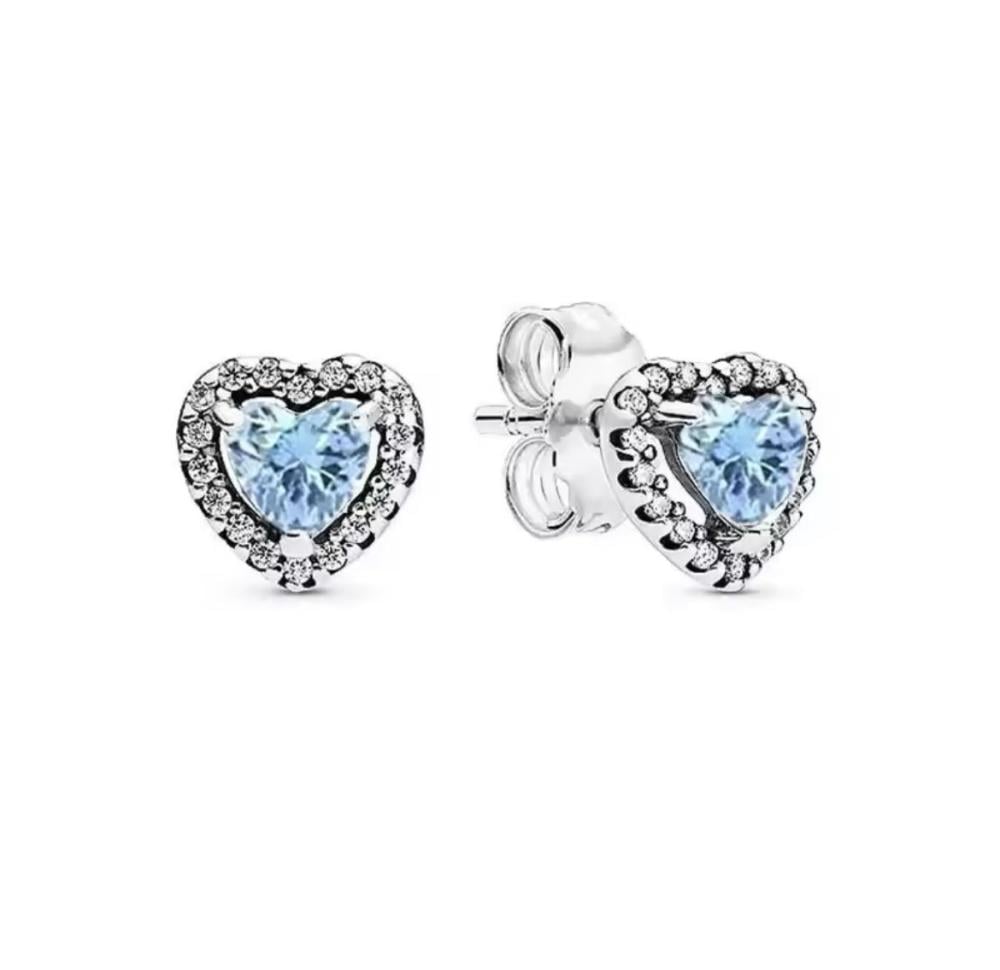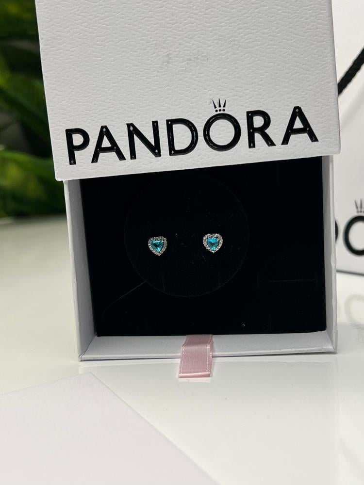 أقراط باندورا المميز شكل قلب يمتاز بحجر باللون الأزرق المميز
