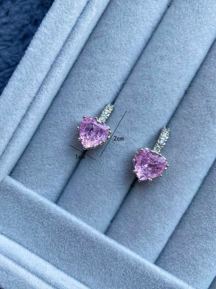 أقراط باندورا المميز شكل قلب يمتاز بحجر باللون الوردي المميز