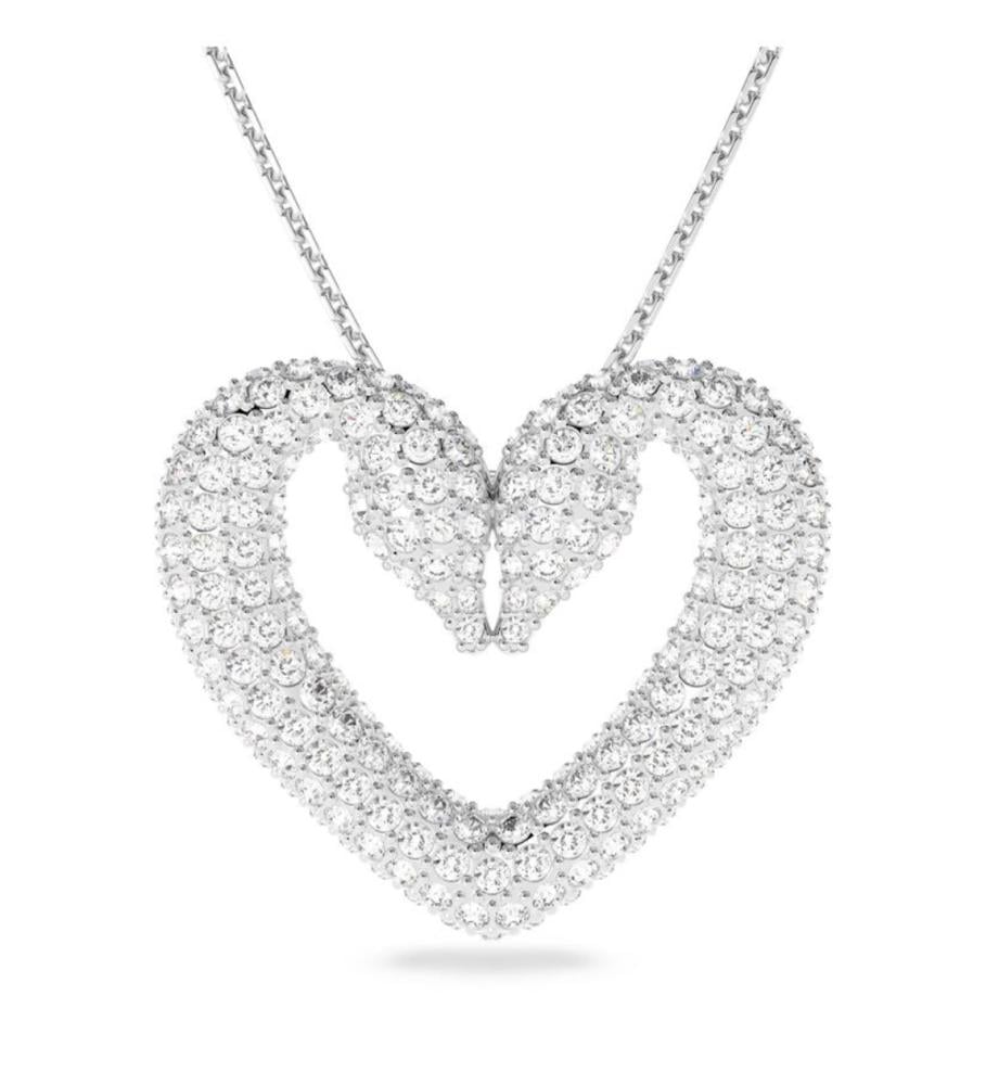 قلادة سوارفيسكي الخلابة مبتكرة بخبرة مصممه على هيئة هلال ولؤلؤ وكرستالة لماعه .