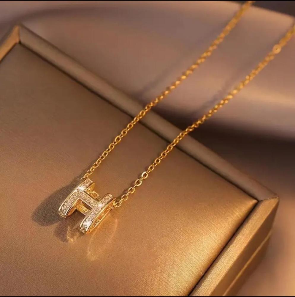 سلسال مستوحاه من هرمس مزين بشعارة الماركة التي تجعل منه شكل مميز وملفتمطلي بطلاء الذهب مصنوع من الستنيل ستيل المقاوم للصدأنضمن لكم جودة المنتج .
